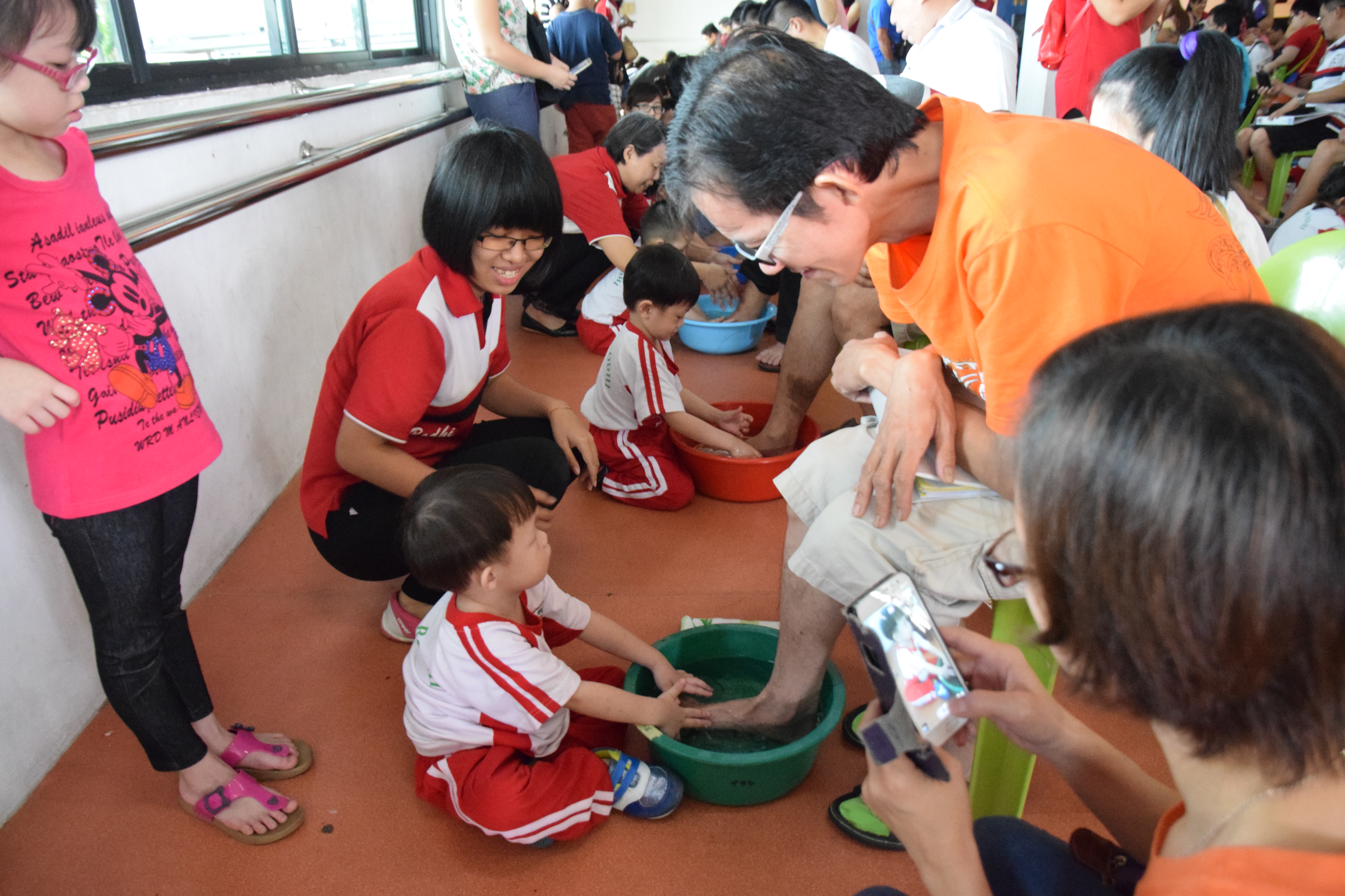 小朋友细心的给爸爸洗脚