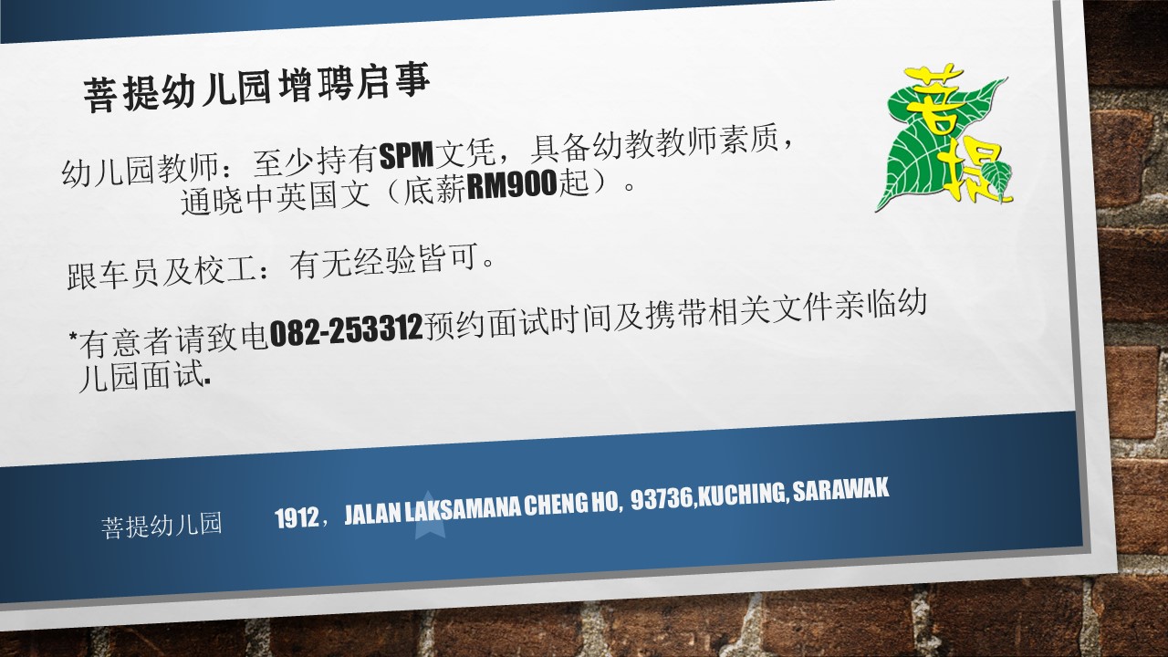 菩提幼儿园增聘启事