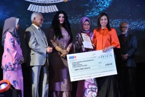 颁奖后,蔡蕙朱园长与州元首敦泰益玛目,州元首后拉嘉古迪泰益及拿督斯里法蒂玛陈赛明等人合影。